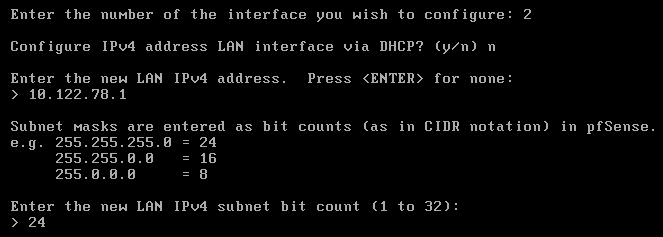 Select No when asked to configure interface using DHCP and assign your IPv4 Address and Subnet mask.